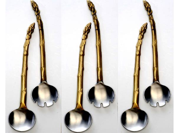 Celebrate the bounty of spring with these elegant, asparagus-inspired salad servers from Table Art. Artist Michael Michaud crafts them by hand, using models from nature, and layering metals to create a unique look. Hand wash with a mild detergent and a soft cloth.