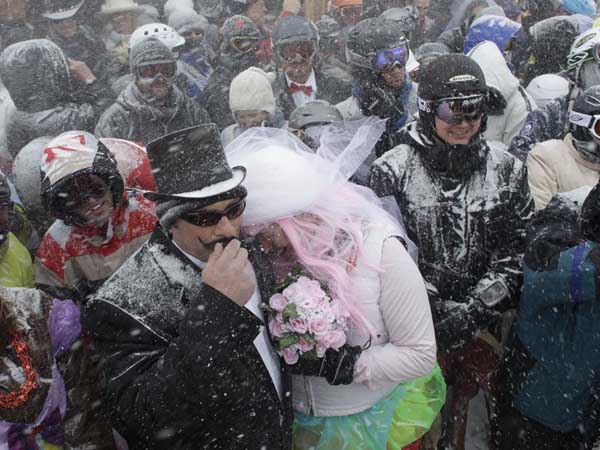 From the ski slopes to the gun range, these couples tied the Valentine's Day knot in style.