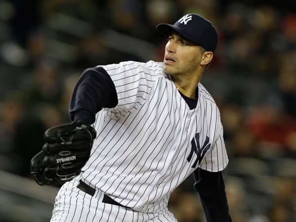 Pettitte, 40, (1-0) tossed eight sharp innings on a 43-degree night and Rivera entered to a standing ovation from those left in the bundled-up crowd of 40,611 as the familiar chords of Metallica's "Enter Sandman" blared out in the Yankee Stadium speakers.